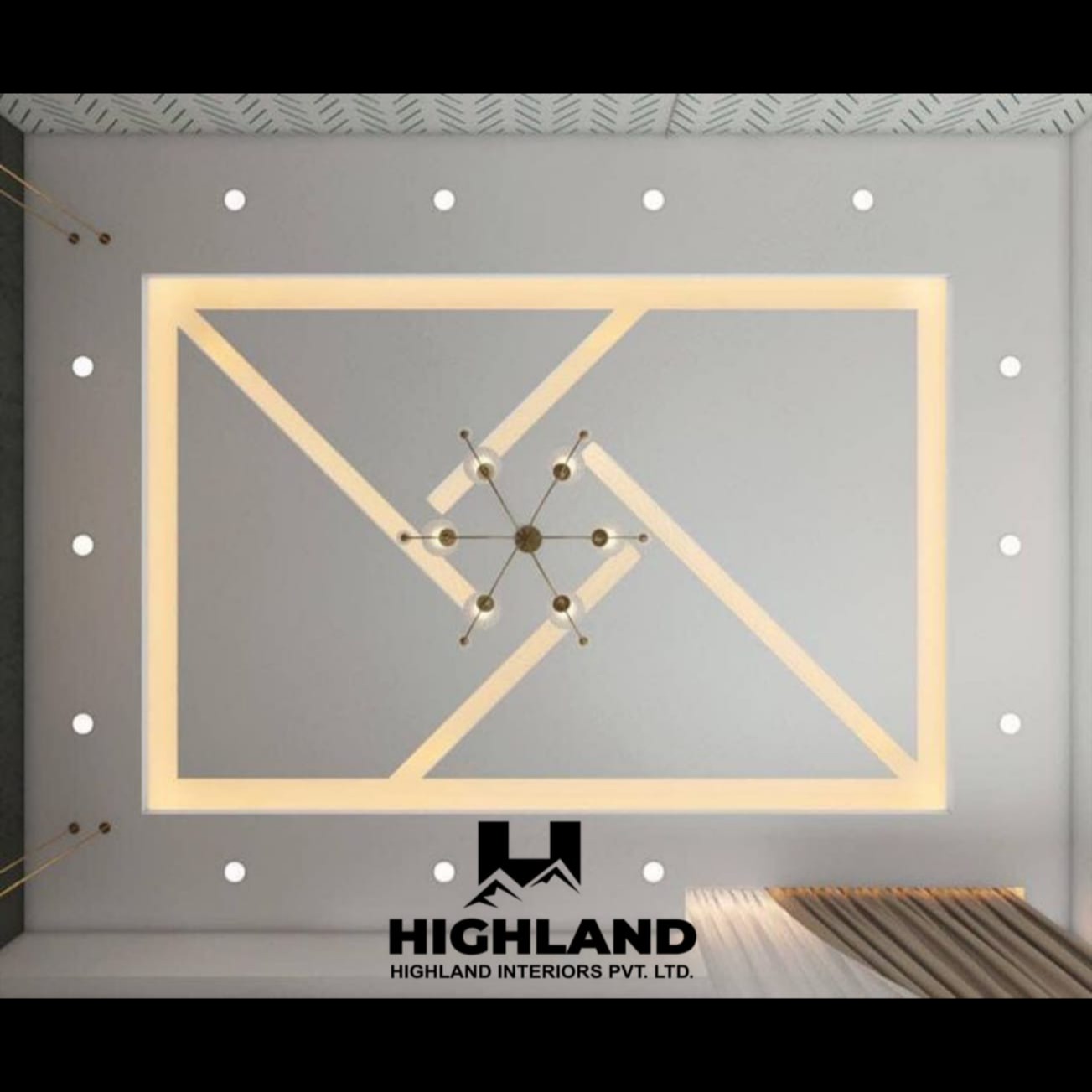 Modern Geometric LED False Ceiling Design by Highland Interiors