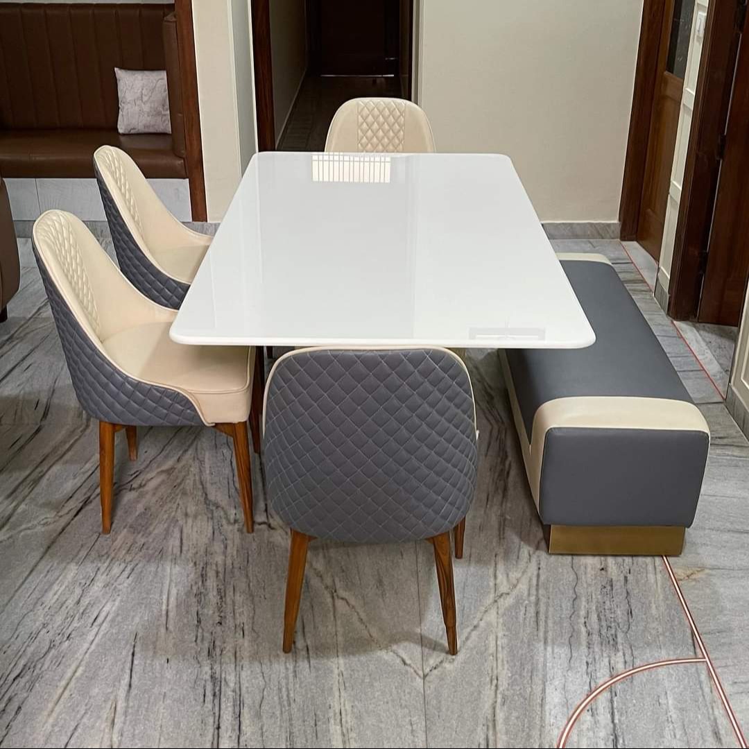 Our range includes wooden dining tables, modular dining tables, marble-top dining tables, glass-top dining tables, compact dining sets, and customized designer dining tables. Each piece is crafted using premium materials, modern machinery, and expert craftsmanship to ensure durability and long-lasting performance.