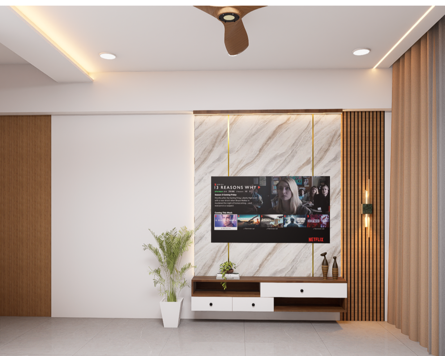 We at Highland Modular Kitchen and Interiors design bespoke TV units that perfectly blend with your home’s interior theme. From minimalist wall-mounted panels to luxurious statement units with textured finishes and LED highlights, each design is crafted to maximise utility and elevate the visual appeal of your living room.