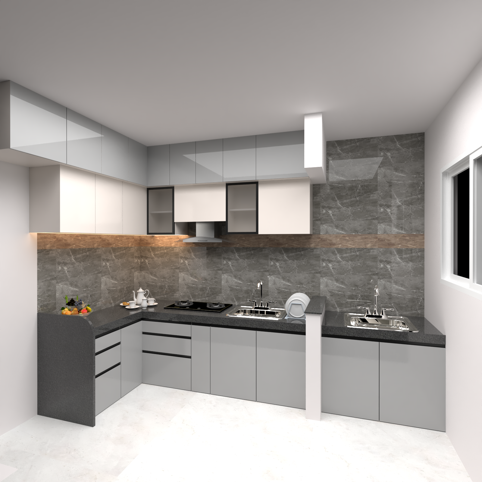 Modular Kitchen design, as in Interiors is the important aspect to consider in full house interiors, We specialize in creating customized modular kitchens that blend elegance, functionality, and superior craftsmanship to suit every lifestyle. Our team designs a variety of layouts — L-shaped, U-shaped, parallel, straight, and island modular kitchens — each optimized for space efficiency and convenience. From design consultation to installation, we handle every detail with precision and care. Every Highland kitchen is built using premium-quality materials, advanced hardware, and elegant finishes, ensuring durability, style, and ease of maintenance.